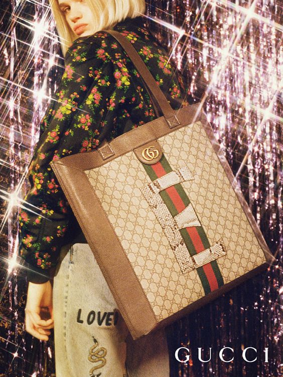 Gucci的Monogram來源可以追溯至60年代,當時皮革因戰亂而變得稀有,品牌創辦人Guccio Gucci因此選擇了以帆布代替,並印上這個標誌性的monogram,以米啡色為底色,印上深啡虛線以及由創辦人名字Guccio Gucci縮寫而成上下倒轉的雙G圖案,連結成一個個的鑽石圖案,此monogram印花亦被名為「Diamante(鑽石紋)」。繼而出現在每個年代的Gucci產品設計之上,Guccio Gucci更形容這是「最顯眼的奢華標誌」。