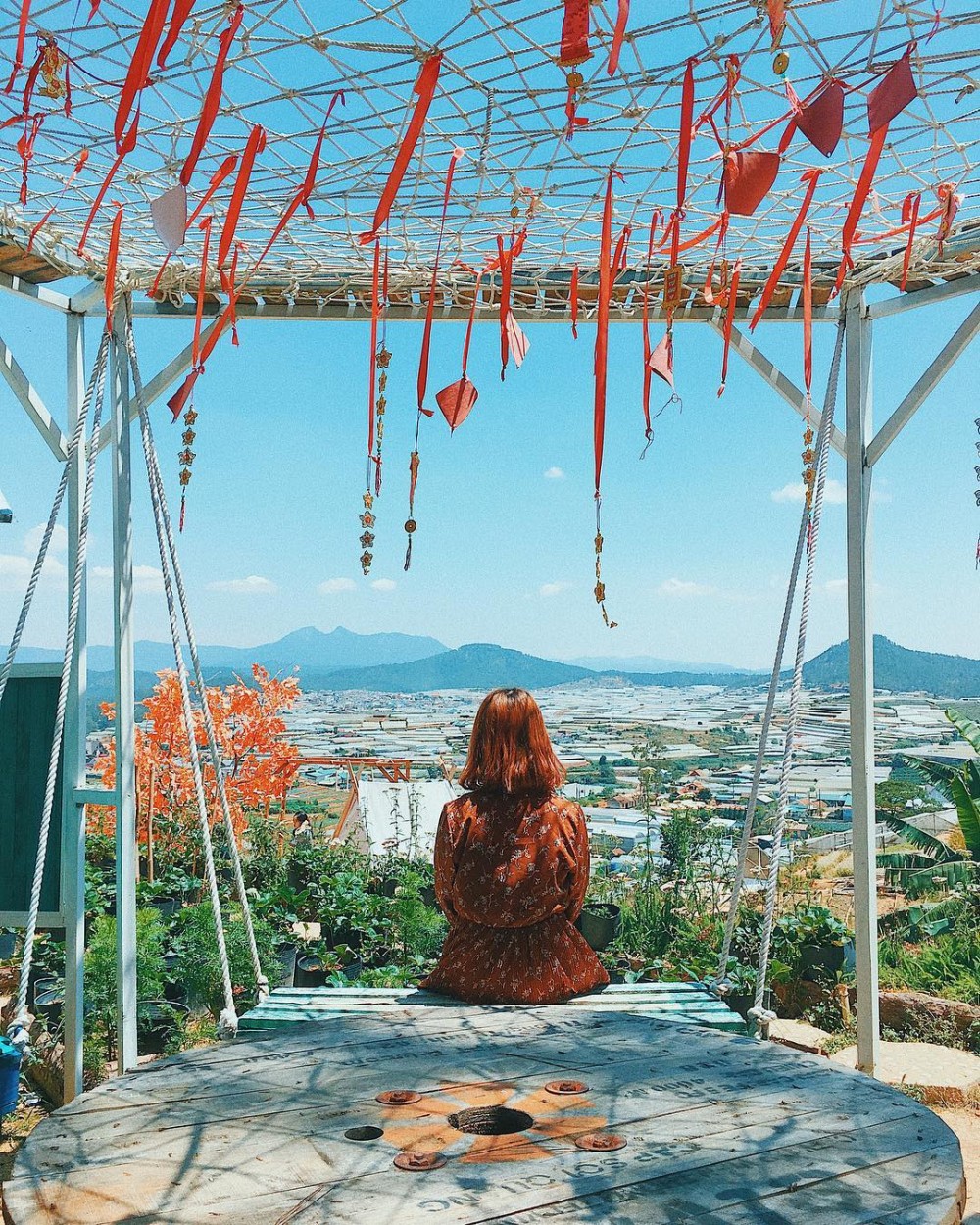 Sunny Farm 由多間咖啡店和民宿組成,除了「天堂的階梯」外還有其他漂亮的打卡位,如這個紅絲帶繩網!