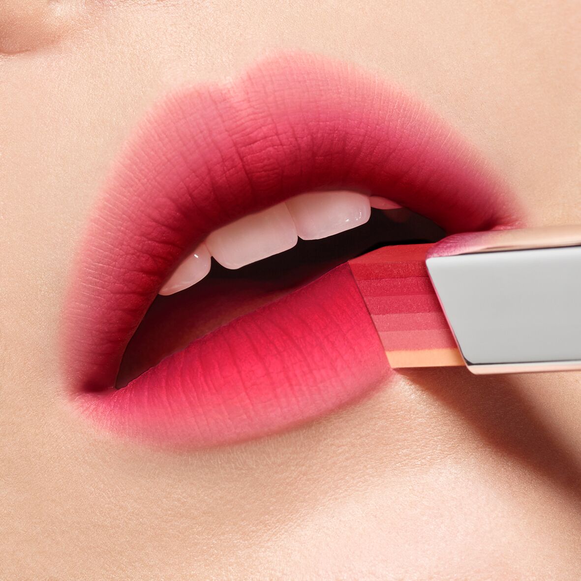 6色漸變分層的效果超顯色,可以突顯唇部立體感,當中的No.19屬於啞緻妝感,加入了椰子油及棕櫚油的成分,讓雙唇保持水潤不乾燥,霧光唇妝變得貼服持久,更有效隱藏唇紋及細紋,讓唇妝更顯細緻平滑!