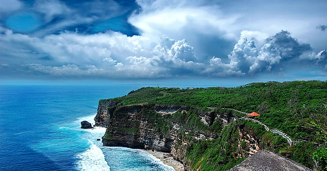 烏魯瓦圖是一個非常著名的觀景勝地~在70多米高斷崖上便有間公元976年所建造的印度教寺廟,周圍的景色都相當美麗,有壯觀的無邊際海景。加上,有傳說指曾經有對相愛的情人因被家人反對在一起而在此跳崖殉情,所以也有「情人崖」之稱。遊客可以在廟附近的廣場看傳統Kecak舞蹈表演,崖上的猴子也會前來歡迎大家。