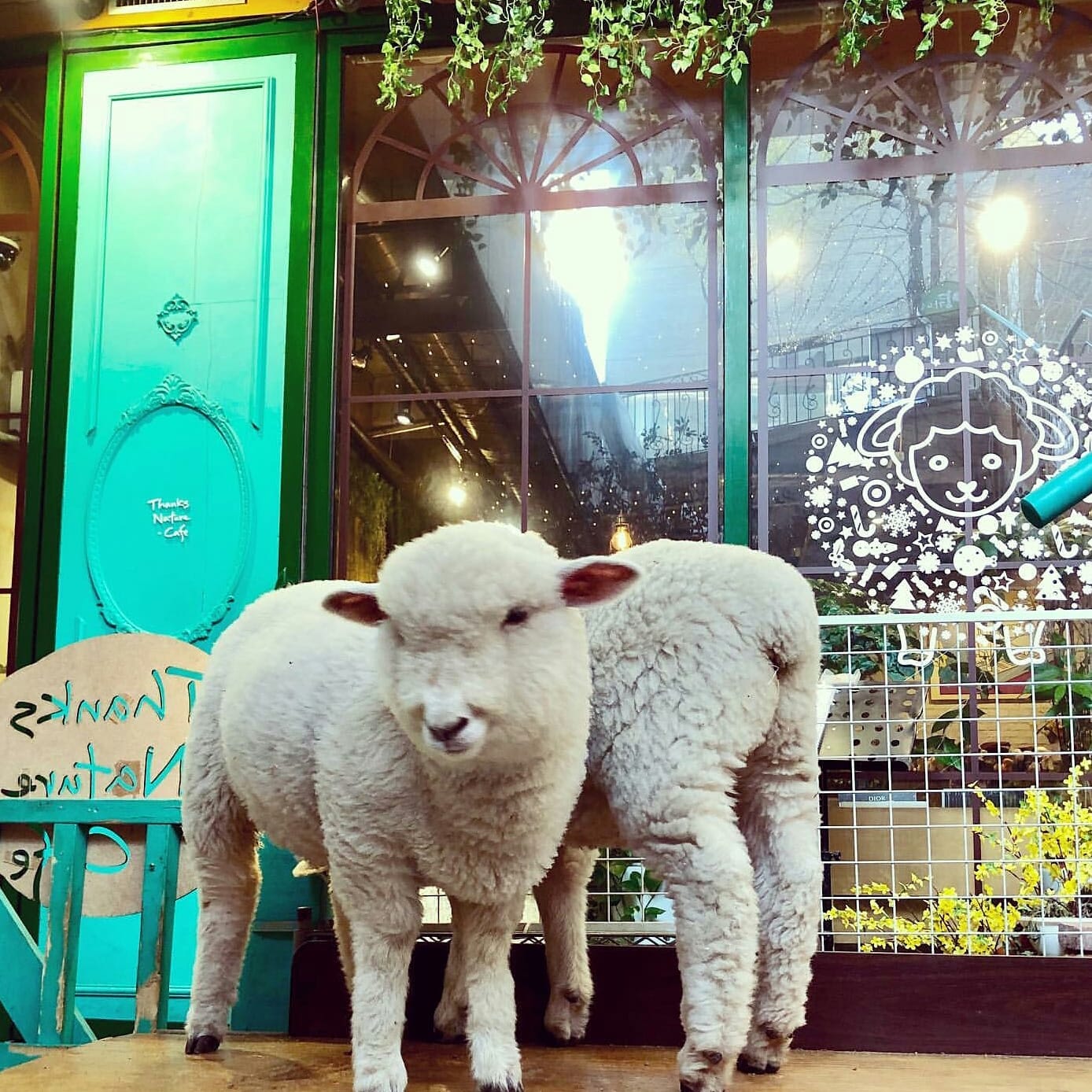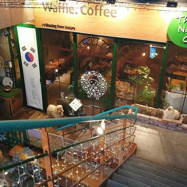 位於弘大的「Thanks Nature Café」是首爾市內少數以牧場為主題的咖啡店,它之所以會這麼出名全因爲韓國經典綜藝節目《我們結婚了》,利特和姜素拉組成的「酒窩夫婦」曾於這裡取景。咖啡店內常有2隻小綿羊和1隻牧羊狗Angel坐鎮,和在場的客人相處。