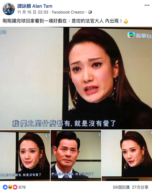 呢一場法庭戲,完全feel到王君馨眼淚在心裏流,面對曾經嘅摯愛,變得痛恨,但對黃智賢嘅感情仍然處於「剪不斷、理還亂」嘅狀態,就連譚校長都忍唔住放上個人社交平台大讚王君馨好戲~