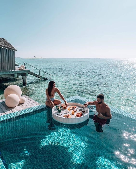 渡假天堂當之無誤!如果你跟他都不是喜歡走馬看花,早出晚歸跑行程的話,馬爾代夫是個很好的選擇!享受兩人寧靜的時光,住在水上屋內,打開陽台就能看海~