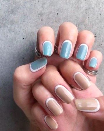 想有透過法式指甲來填添一份活潑感覺,可以嘗試一下彩色甲邊。運用透明指甲面底部再配上十指彩色甲邊,多了一份跳脫感,而且不會有很誇張感覺。