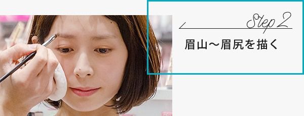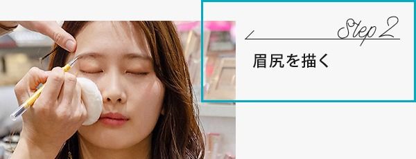 Step 2:利用眉筆繪出眉尾位置,需於這時決定眉型和長度,從而畫出你想要的效果。而訣竅是眉的長度畫短一些,會更貼近日系眉妝,更可有增大眼睛效果。