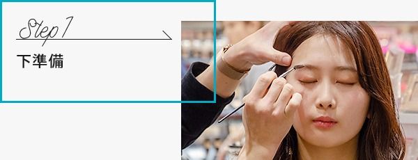 Step 1:化上底妝後,可利用蜜粉沾到眉毛上吸收眉的多餘油脂,再使用眉刷梳理眉毛。而訣竅是把螺絲刷打橫以30至45度角度,順著眉毛梳理。