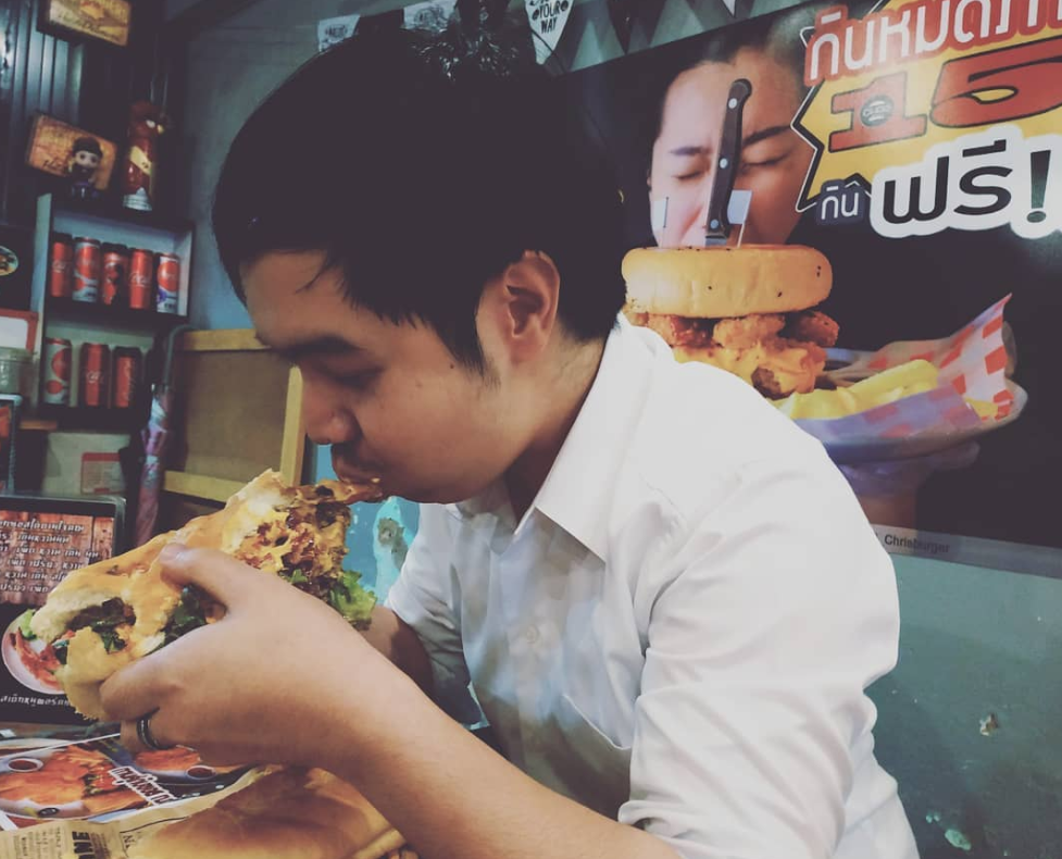 泰國曼谷有間漢堡包餐廳Chris Steaks and Burgers推出了一個勁食活動。只要食客在9分鐘內吃完重達6.5kg的超巨型漢堡包便可得到1萬泰銖,即約2593港元獎金。