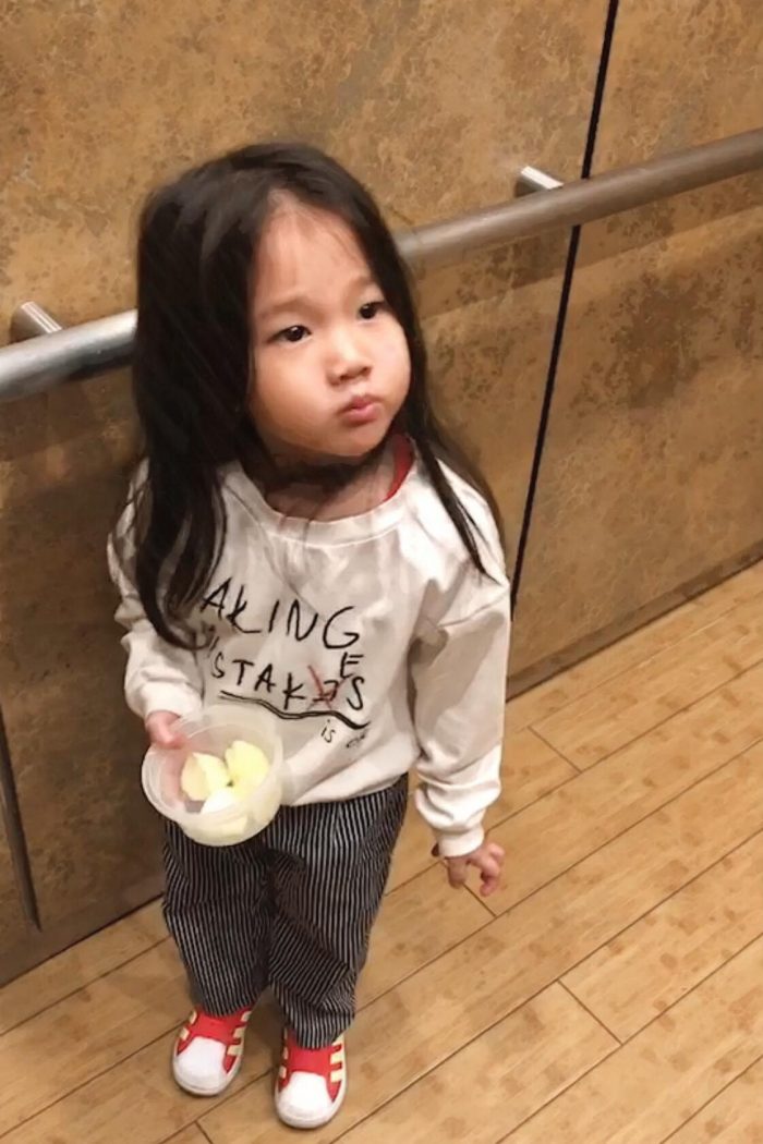 隋棠分享,因為Tony哥已經有湊仔出國的經驗,因此一支公湊寶貝女仔也顯得氣定神閒,唯一擔心竟然是萬萬想不到的—如何幫女兒綁頭髮(笑)臨走前,更特意請隋棠為導師,上了一課15分鐘的「綁頭髮補習班」,照片註解還寫下:「15分鐘的特訓,就在模特兒不斷哎叫抗議下草草收場」。