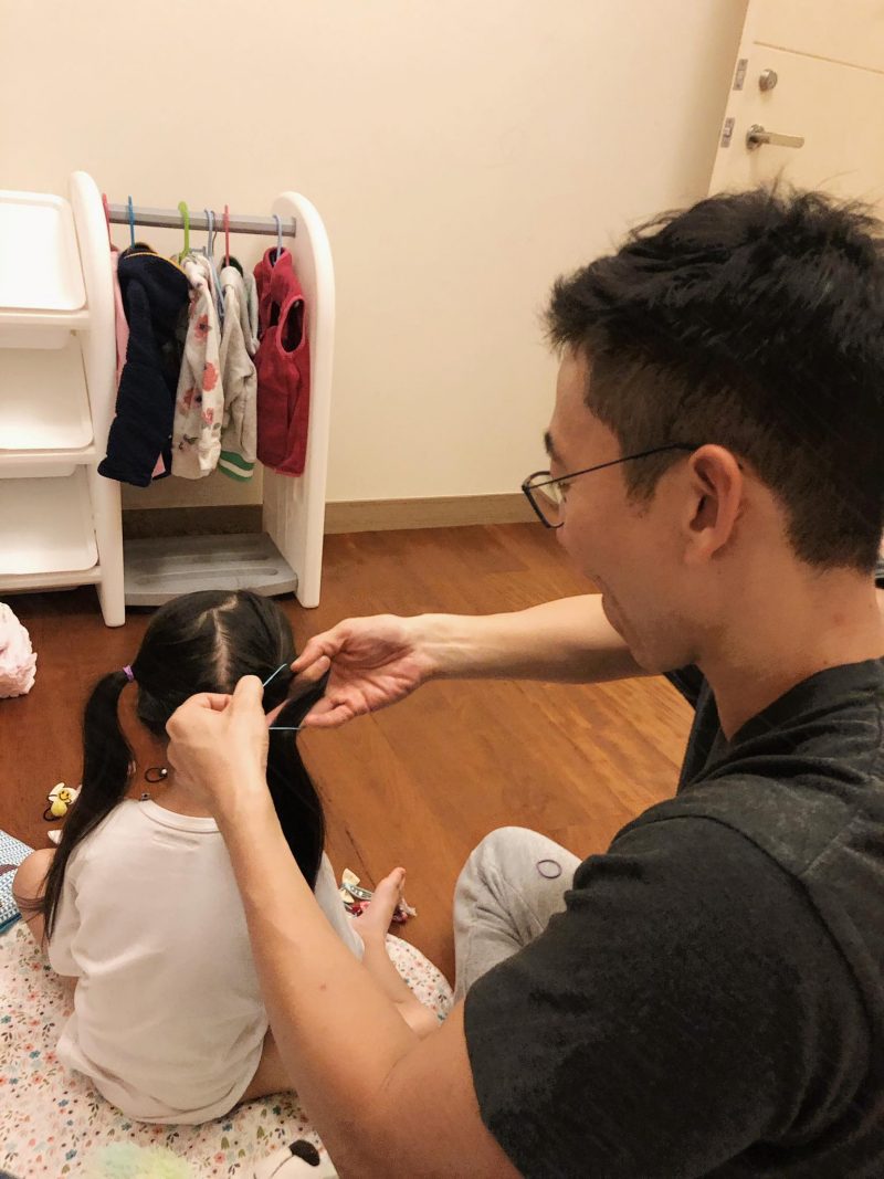 小編覺得Tony哥真得很用心,也很盡力!要知道很多男生都不會替女生綁頭髮,而作為爸爸的Tony就不假手於人﹐上了「綁頭髮速成班」就幾乎天天替女兒梳洗,很有愛呢!