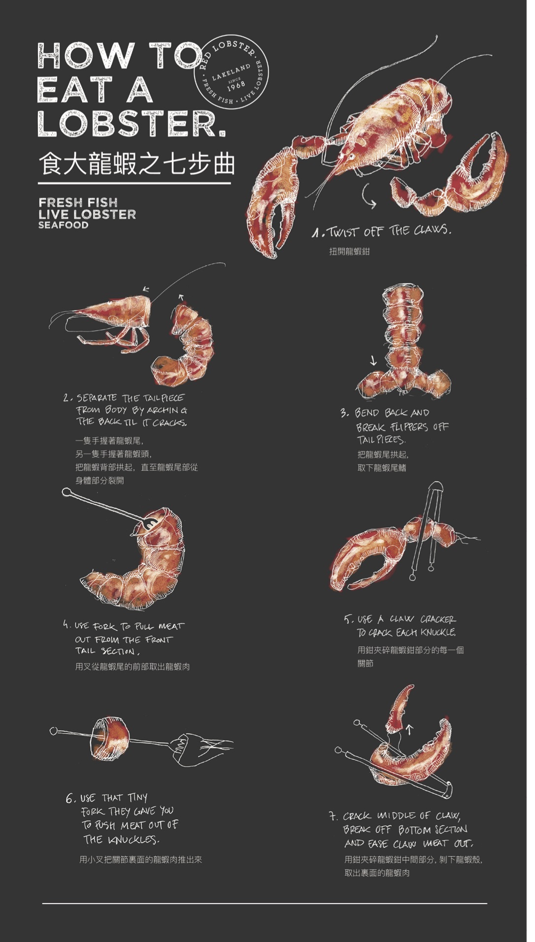 吃龍蝦,最講究的除了是味道,其次就是如何省力及完美地把龍蝦脫離外殻,把龍蝦肉完整無缺般送到嘴裡,這樣才可以享受原汁原味的龍蝦肉!只可靈活地跟著以下的吃龍蝦之七步驟便可以輕鬆吃到美味龍蝦了 !