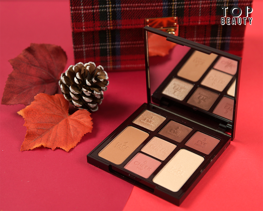 Charlotte Tilbury是個號稱從不踩雷的彩妝品牌,堪稱Tom Ford完美替代~這一盤聖誕推出的彩妝盤,七格就可以化出感妝容,當中三種眼影色調包含柔和閃亮粉色、古銅閃亮紫和啞緻焦糖啡色就可以加強眼窩深邃感,可濃可淡,閃粉幼細不會太浮誇,即使是化妝新手,又或是平日上班、約會使用也很okay!美編最愛的一格是「7號打亮色」,香檳金打亮不但可以輕輕掃於C字位增強蘋光肌形造飽滿感,更可以用於眼窩打底和眼頭打亮,妝感比單用1號帶啡金調眼影更顯清淡,卻不失精緻感。