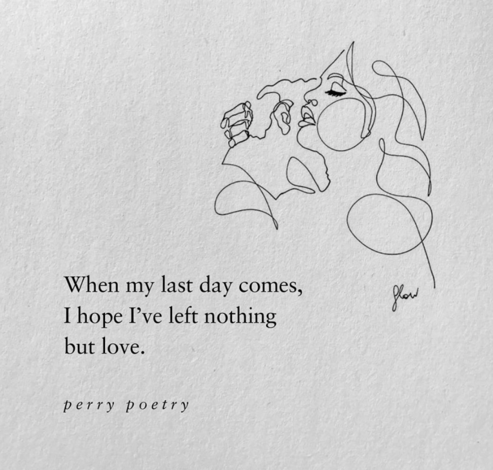 #1 When my last day comes, I hope I've left nothing but love (當末日來臨,除了愛,我其它都不需要。)