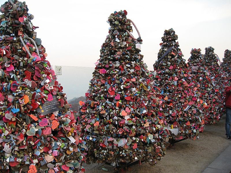 去年熱播韓劇《來自星星的你》,主角都敏俊同千頌伊都曾在首爾塔鎖住著他們的愛情。不只是外地旅客都要前來,連本地情侶都愛到首爾塔鎖上愛情鎖。順帶一提,首爾塔還設置木箱可以收集鑰匙,不用亂扔。