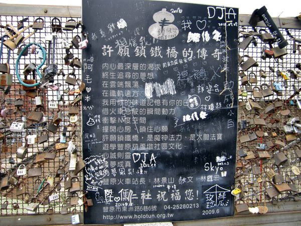 台中的豐原火車站北側天橋不知從何時開始有一個傳就,只要把對另一半的愛意,鎖在天橋上,便可以把愛情牢牢鎖在心房,而火車一經過時便會產生巨大磁場,從而實現願望。因此,火車站天橋的鐵網便掛滿鎖頭了。
