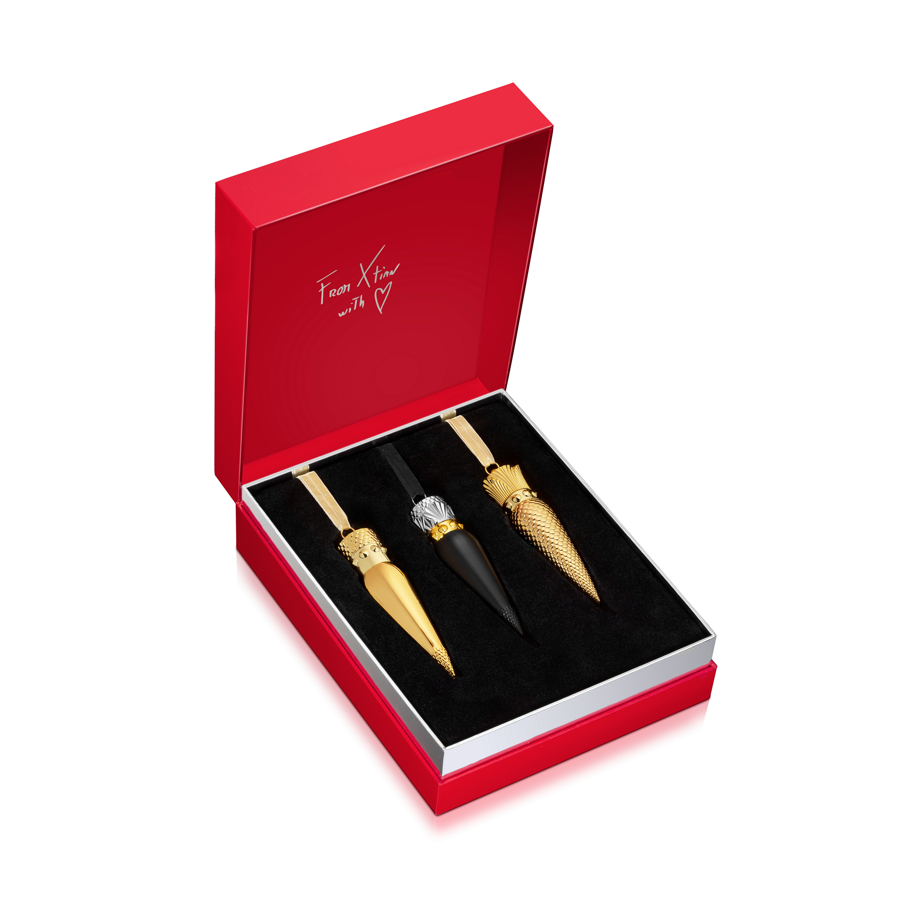 其中一款新春限定禮盒以3款唇膏送上祝福,紅色的奢華漆器禮盒都附上 Christian Louboutin 先生獨特簽名圖案 “from Xtian with Love”及印上鼠年限定的可愛金鼠圖案,盡顯高貴。 一盒3支自選瑰麗的亮金色瓶蓋、代表女王權杖唇膏成為個人專屬珍藏。而啞光紅唇Velvet Matte系列為經典之作,大家不妨選擇這系列唇膏吧!