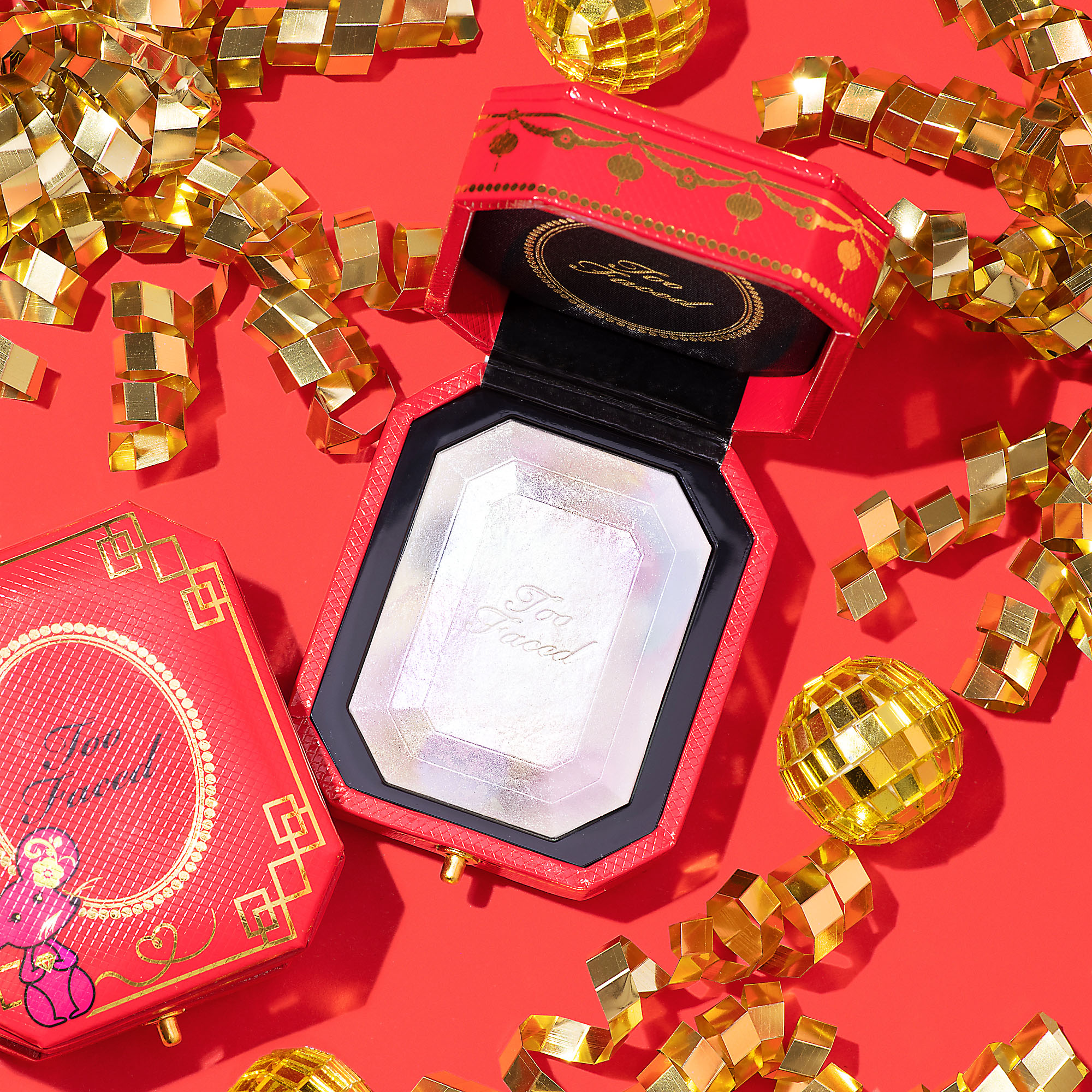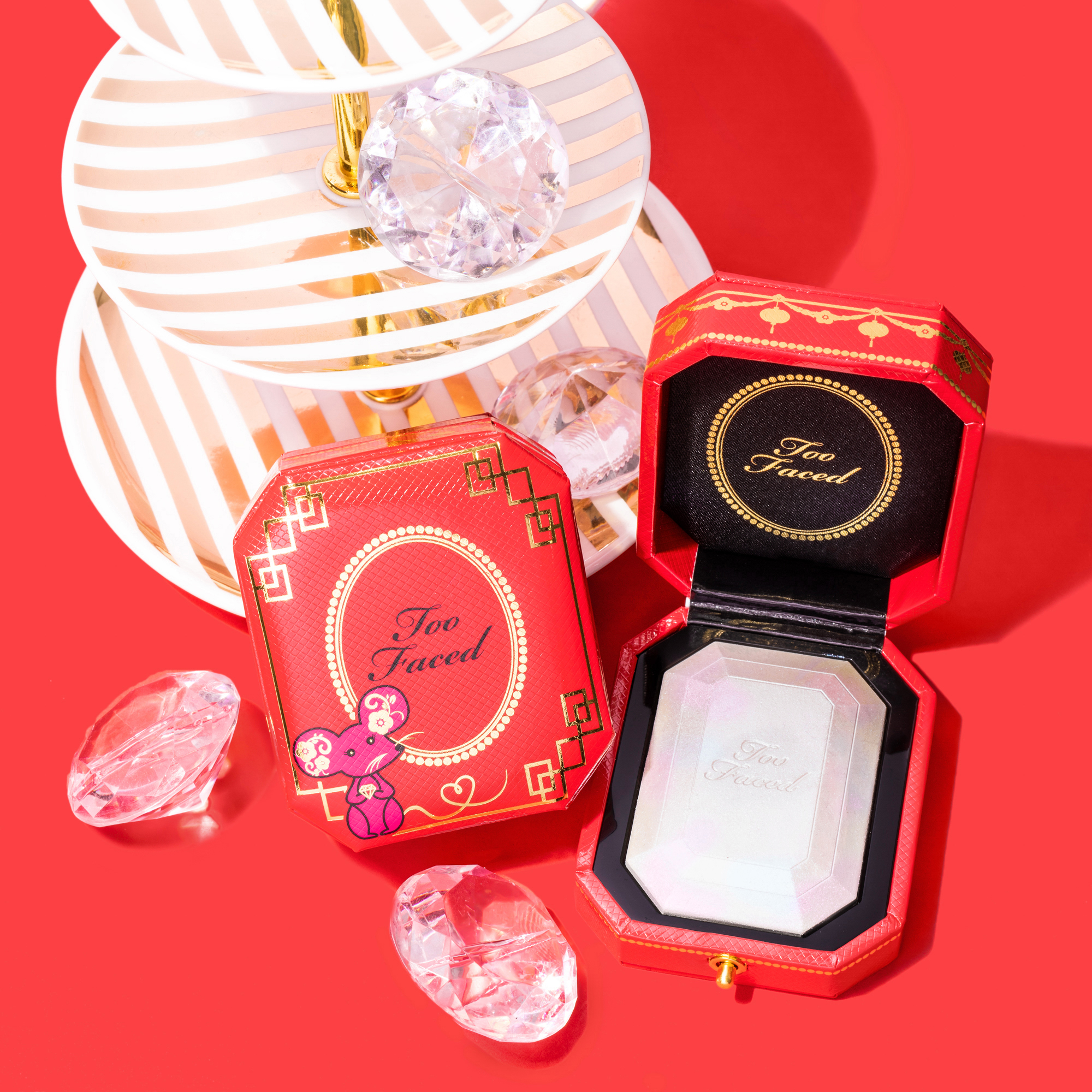 DIAMOND HIGHLIGHTER 鑽石高光粉盒換上紅色賀年新衣並配上鼠年吉祥生肖圖案可帶出農曆新年即將來臨訊息和幽默玩樂氣氛。以鑽石粉末和反光珍珠粒子而成的鑽石彩虹亮光光影粉,其幻彩效果可提升膚色亮澤度。而雙色色澤能隨著光線和動作移動而改變,只要以層層疊掃方式便可塑造出專屬光影妝感,更可用於眼部、面部及全身體肌膚。