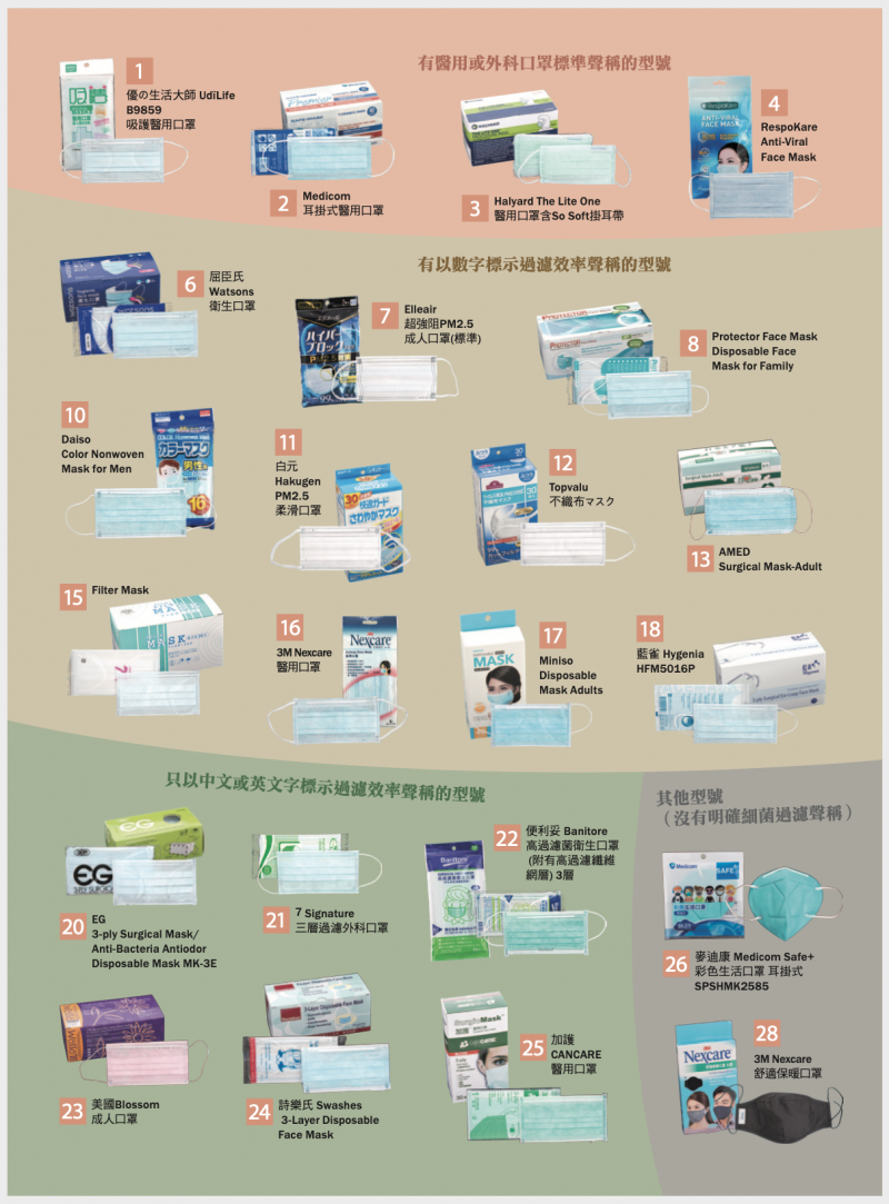 口罩需求大增,但你又是否知道那一種口罩適合自己,以及合乎標準?市面部分口罩產品聲稱符合美國材料和試驗協會(American Society for Testing and Materials,簡稱ASTM)標準F2100-11 、歐洲標準 EN14683或台灣標準CNS 14774,消費者選購時可作參考。消委會提供3篇有關口罩(494期)、洗手液(513期)、濕巾及搓手液(466期)的《選擇月刊》報告,供大家免費下載參考,亦會於《選擇月刊》的Facebook上發布帖子。