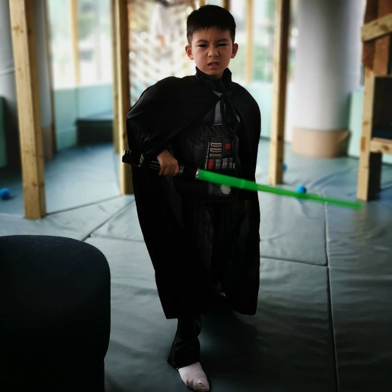 除咗食物外,Aimee仲為小朋友預備咗星球大戰嘅cosplay衫同光劍等,大仔扮黑武士擺pose影相夠型,細女就扮莉亞公主超級可愛!