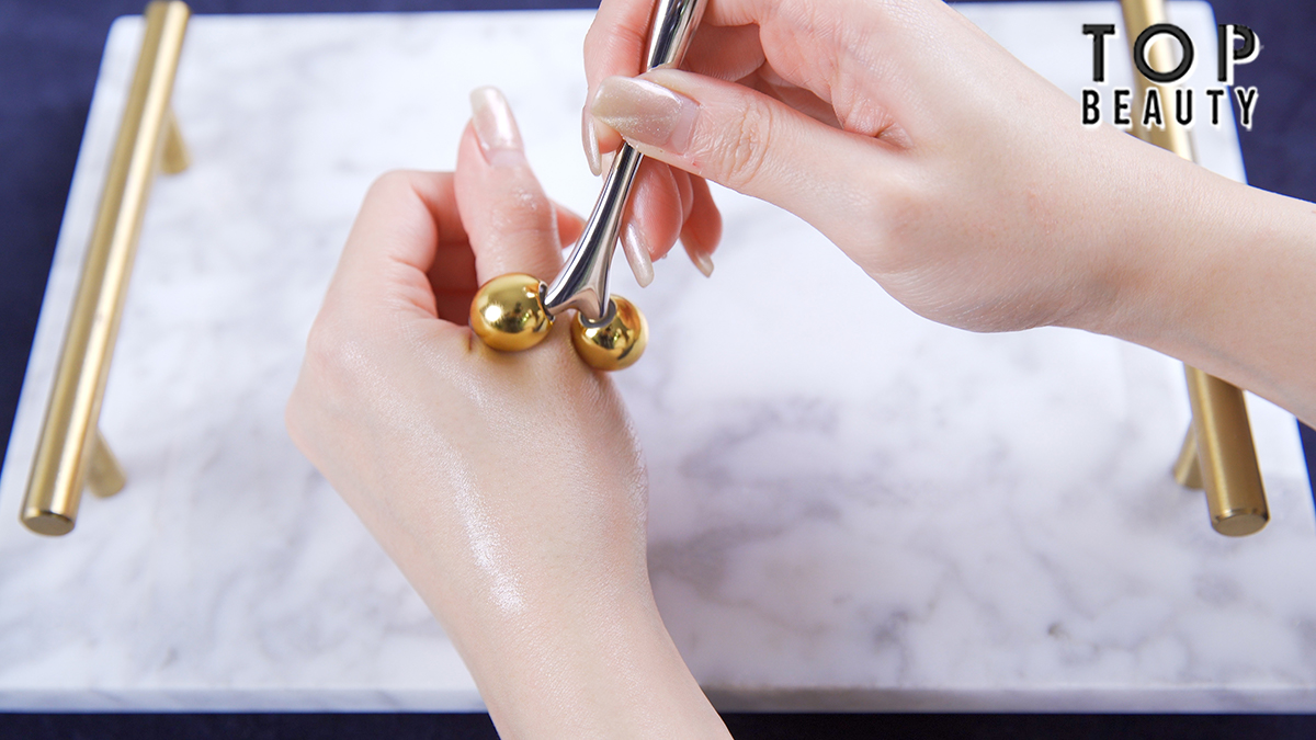 精華呈水狀質地,輕盈無負擔。使用時,用指腹將精華輕拍於面部,使用L形滾輪由臉部中央逐漸向外推開,淋巴份置可以稍加力度輕壓,排走多餘水分。
