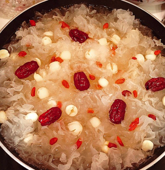 銀耳含有植物膠原蛋白,可以健脾開胃、滋陰潤肺。另外也有潤膚、祛斑功效!由於銀耳含有多種礦物質,例如鈣、磷、鐵、鉀、鈉、鎂等,其中鈣、鐵的含量很高,屬高級滋養補品,食糖水或者飲湯時,不妨多食銀耳。
