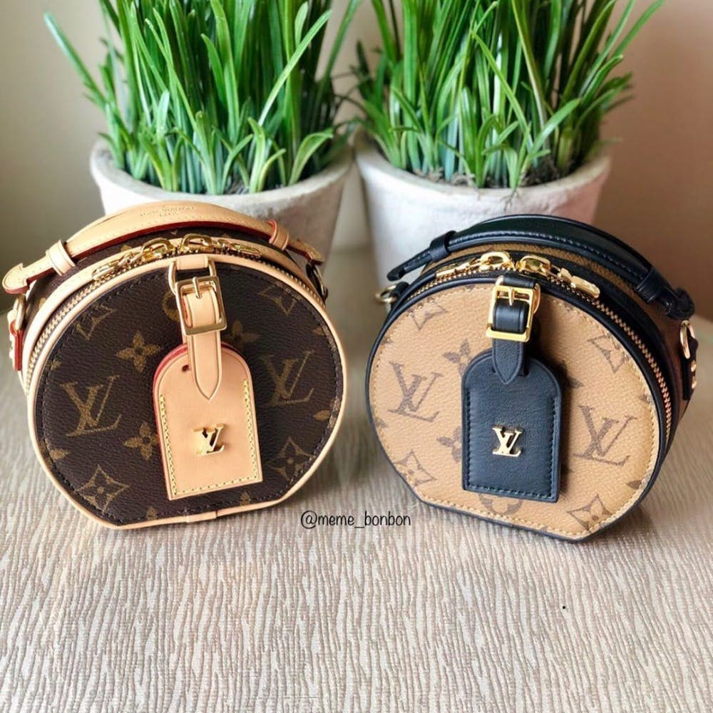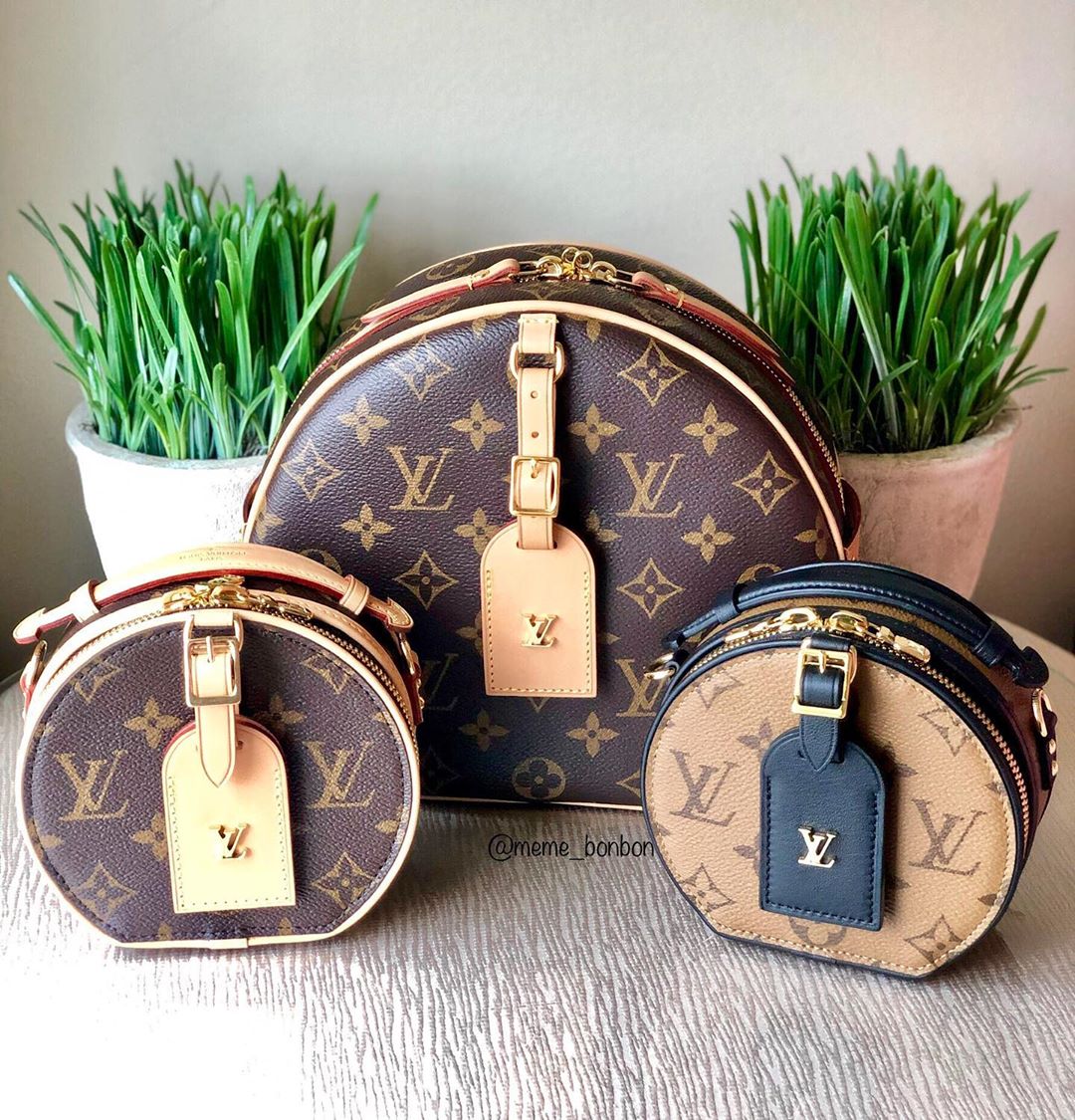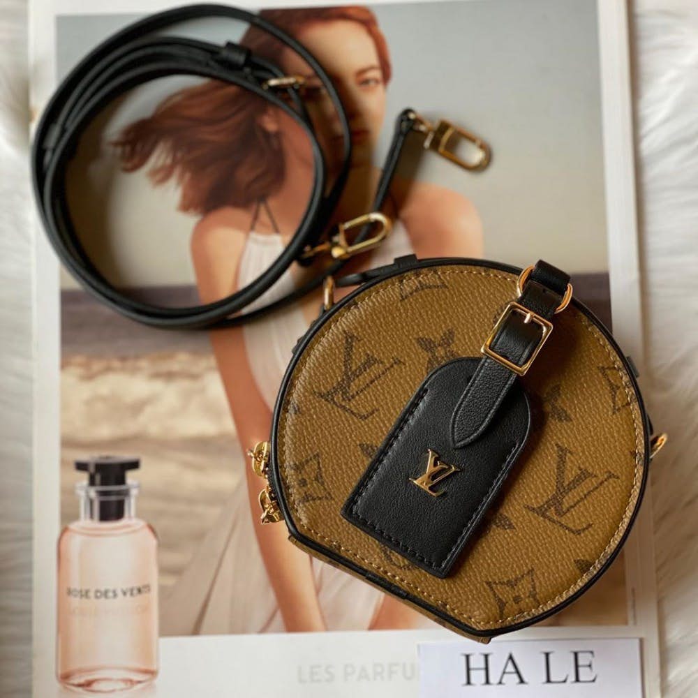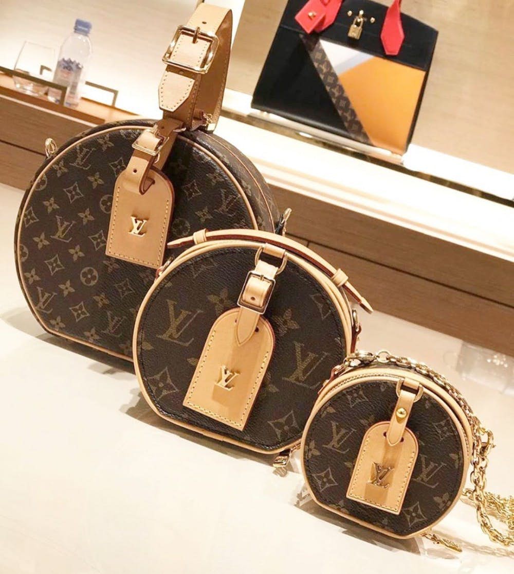 2019年,Boîte Chapeau Souple的Monogram圖案放大,保持經典設計的同時更添增肩帶,用途更為廣泛。當然少不了LV經典元素—小圓袋拼上行李吊牌、皮革孔小肩帶、標誌性Toron手柄更可作手提,斜揹或肩揹,整體感覺隨性又復古,難怪成為名人最愛。