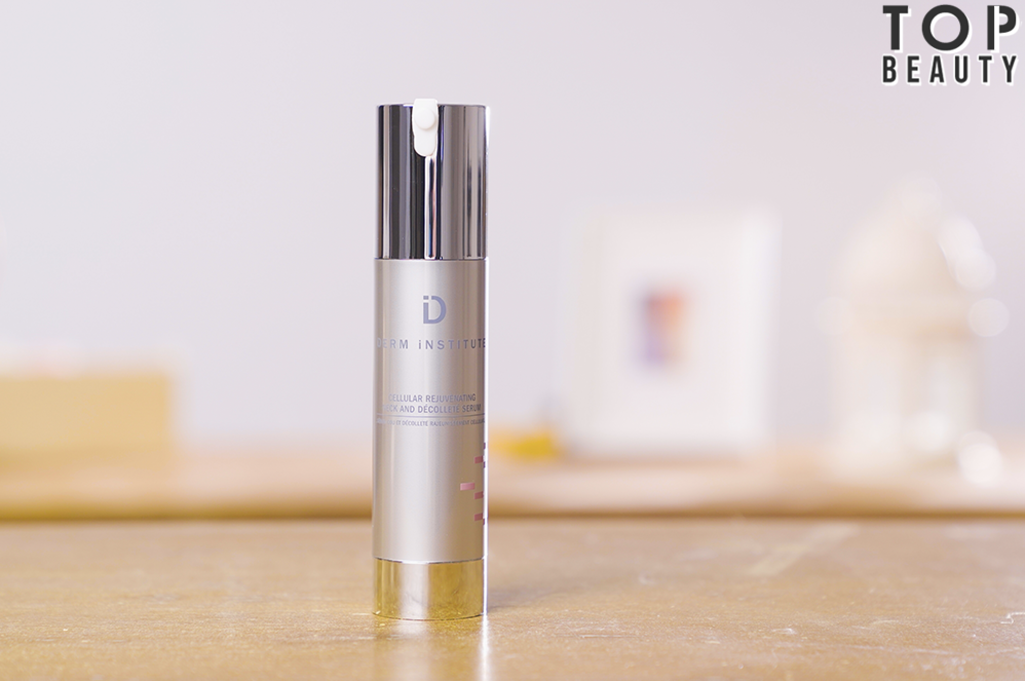 由於頸部真皮層非常薄,只有面部三分之二厚度,所以更加需要好好保養。而Derm Institute基因抗老胸頸精華含有液態鑽石萃取物可有效促進膠原蛋白合成,達到提升頸胸線條緊緻效果。先擠出兩泵份量並用掌心温熱後,由下而上塗上頸及耳背位置便可提升頸胸線條了。