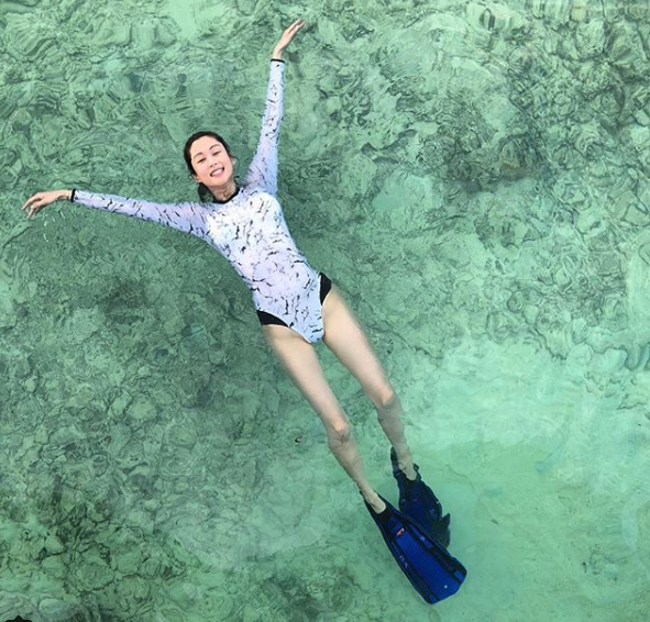 今年年初佢跟老公去馬爾代夫旅行,慶祝結婚一周年~