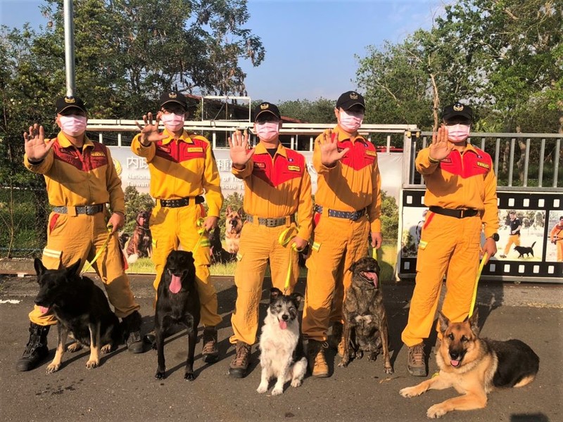 而當地消防署亦找來5名特種搜救隊成員,戴上粉紅色口罩與退役搜救犬合照並呼籲:「男生可以戴粉紅色口罩嗎?當然可以!有甚麼問題嗎?」