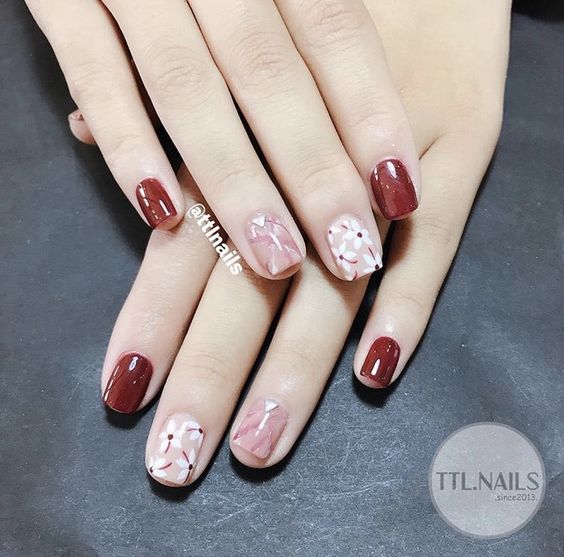 也可以嘗試畫上酒紅色的花朵,女人味立即提升!