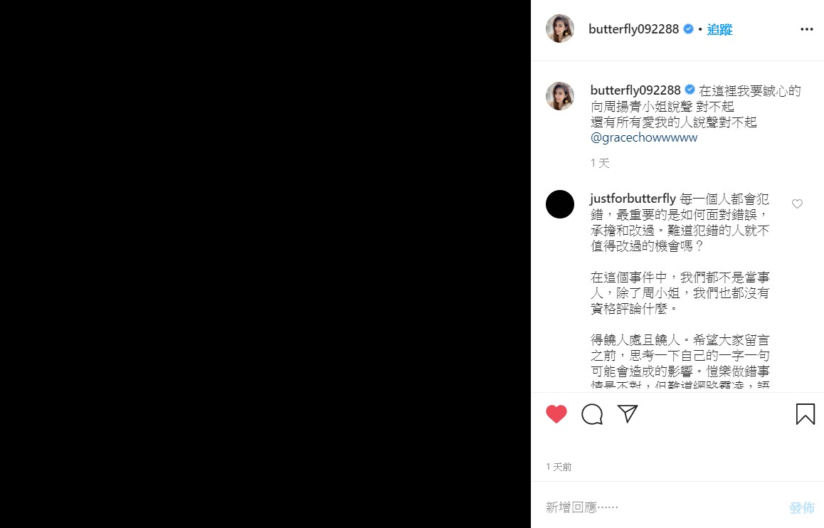 自從周揚青的「毀滅式分手」後,有關羅志祥的花邊新聞愈爆愈多,當中他與旗下女藝人「蝴蝶姐姐」愷樂的關係更成為全城焦點,而日前愷樂亦終於在社交網上向周揚青道歉,間接承認自己是「小三」,然而最讓眾人驚訝的是愷樂自己過去亦曾經承受過被伴侶背叛之痛,可是偏偏今次自己就成為別人關係中的「第三者」。