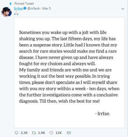 伊凡卡漢日前在推特上透露罹患罕見疾病,要大家為自己集氣加油,並表示在未來1周到10天將會與大家分享進一步的消息,豈料如今迎來的卻是讓人心碎的消息!他的家人隨後發聲明表示:「他於2018年前曾公開自己對抗癌症,今日很傷感,我們要帶出他已過世的消息,他有一個強壯的靈魂,他戰至最後一刻,也常常成為身邊人的啟發。」他的逝世消息轟動印度影壇!伊凡卡漢他除了《少年PI的奇幻漂流》,也曾出演過《貧民百萬富翁》、《紐約我愛你》、《蜘蛛人:驚奇再起》以及《侏羅紀世界》等。