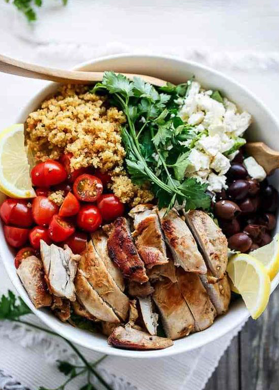午餐:雞肉、清蒸蔬菜和番茄沙拉