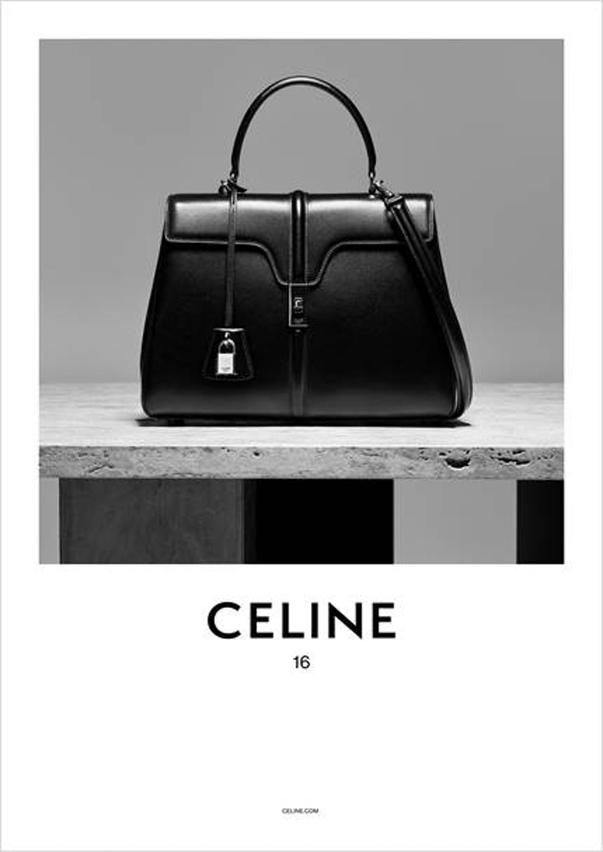16是Hedi Slimane加盟CELINE後第一天設計的手袋,極具標誌性,而在正式發佈前,不少女星如Lady Gaga、Angelina Jolie、長澤正美都曾經攜帶著16亮相,因此在明星效應下,16在未發佈前已被廣泛討論。能手提、肩背和斜挎,並設有旋轉鎖扣。尺寸分為SMALL、MEDIUM及LARGE 3款。
