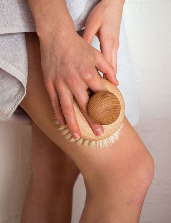乾刷有助於刺激細胞並分解皮膚下的毒素,同時加強血液循環,有助排走皮下多餘脂肪,從而減少橙皮組織。此外,乾刷可以促進淋巴液流動,減少脂肪團積,可預防橙皮紋的出現。如你是第一次做乾刷,做完第一次後先等待一星期,看看身體上是否出現敏感和其它狀況。之後每星期可做2至5次,每次只需約5至10分鐘,謹記是在洗澡之前做,身體和刷都要是乾的。