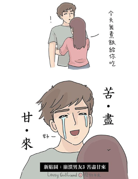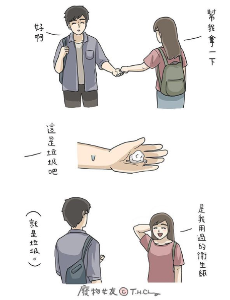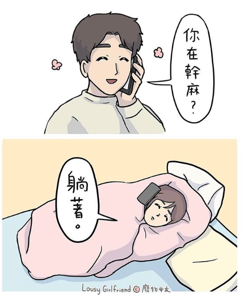 有人話情侶相處耐了,惰性同真脾氣就會現形~其實能夠喺愛人面前,無所顧禁忌做真實嘅自己,諗落都係一件好幸福嘅事~喺外面工作累了,回到家就可以做回自己,跟他自然地相處~台灣插畫家tina開咗一個名叫「廢物女友」嘅ig,記錄咗同男朋友之間日常生活瑣碎事,睇完或者你會覺得—「女人啊~就係咁古靈精怪卻教人不得不愛!」以下10幅插圖,有令你諗起你跟他平淡又幸福,令到佢覺得「無你符」嘅日常生活嗎?