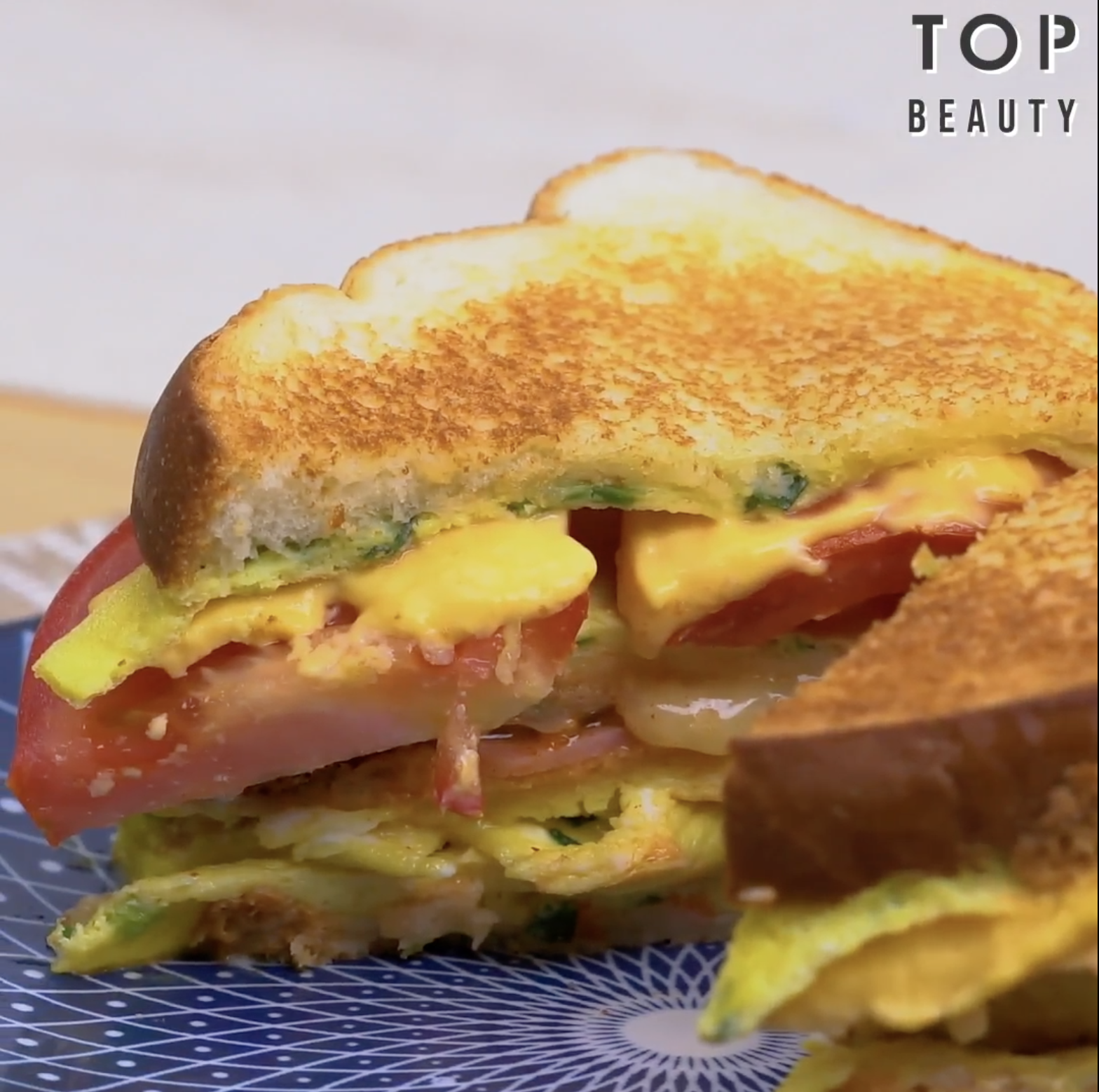 有時也想好好犒賞自己整個星期的辛勞的話,不妨選擇這款有點邪惡的雞蛋三文治吧!食量偏少的女生可以只以2塊麵包取代原有的4塊!