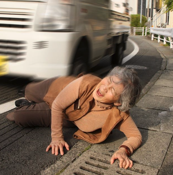 呢三張取名為「寫真」嘅相,全部都係扮炒車、畀車撞嘅意外相,唔血腥但又勁傳神,做政府宣傳照一定有好反應(哈哈)婆婆自娛又娛人,小編一望到婆婆臉上扮痛苦又忍唔住笑嘅臉容,自己都忍唔住笑咗出嚟~