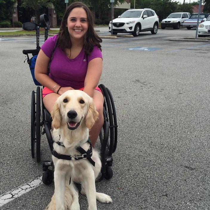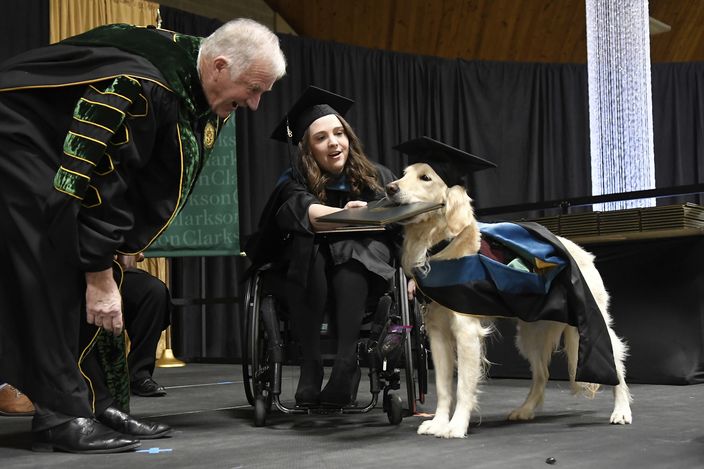 喺美國,有一名25歲嘅女子霍利(Brittany Hawley),因為患有長期痛症,要以輪椅代步,雖然如此但佢仍然不屈不撓。更喺愛犬Griffin嘅陪伴下,於紐約州克拉克森大學(Clarkson University)修讀職業治療碩士課程,成功畢業,最後校方仲頒發一個榮譽文憑比Griffin,以表揚佢對主人嘅忠心。