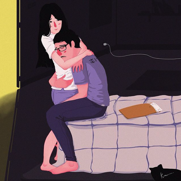 人同人之間嘅相處,就係一門艱深嘅學問,每對愛侶都有屬於佢哋自己嘅相處模式,但講到幸福甜蜜,有一個愛情保鮮法雖然係最簡單,卻教人最易忘記—陪伴。陪伴固然需要一個雙方都覺得舒服嘅空間,但更需要嘅係情感上嘅支援,放下手機、工作,用最簡單、最直接、最原始嘅對話溝通,將雙方拉近。一個美好嘅二世界,若然少了最真摯嘅陪伴,哪會幸福?插畫師Kenn筆下作品,描述愛侶間生活日常,寧靜的一刻,身邊有你陪伴著,就是最簡單但幸福的日子。