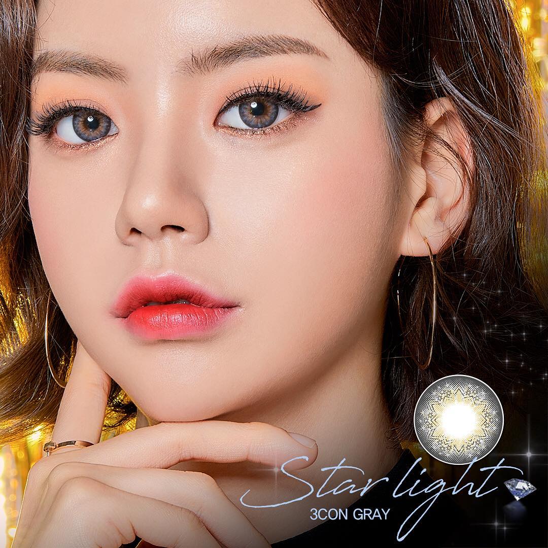 有些女生的瞳孔天生就比較小,就算化妝也容易顯得雙眼無神,所以大直徑的隱形眼鏡依然有市場,但在放大的同時又不想把眼睛放大得像嚇人的洋娃娃,那隱形眼鏡除了顯色直徑大外,顏色就更需要做到有層次了!STAR LIGHT有啡色以及灰藍色,顯色直徑為13.9mm,仔細觀察CON面的話,更會看到當中的星型圖案與與金黃色點狀花紋交織著,令雙眼更立體迷惑!絕對是放大雙眼的美妝武器呢!