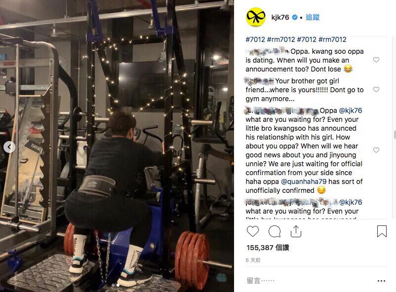 自李光洙公開了脫單的消息後,有部分粉絲到金鐘國的Instagram留言,希望鐘國Oppa同樣能早點脫單:「別輸給光洙,請找個女友」、「今年希望Oppa能找到一個愛你的人」、「李光洙已經有女友,你甚麼時候有」、「你的弟弟已經有女友,你的在哪?別再健身了」!