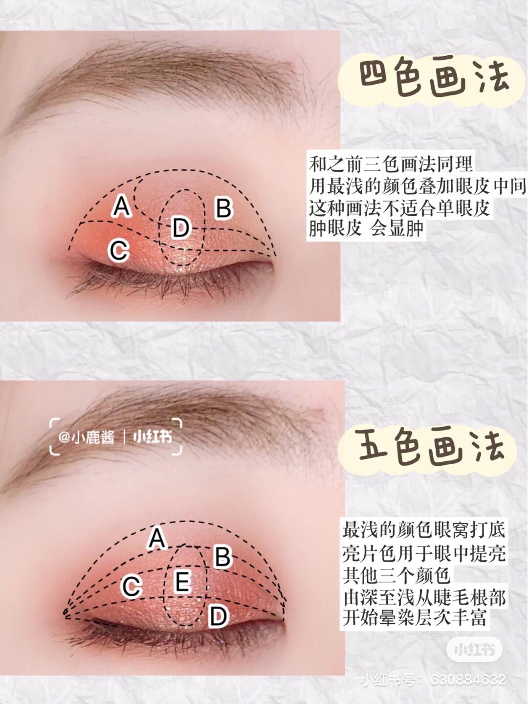 與3色眼影畫法A原理一樣,不過最後就在眼皮中間位置再疊加一層最淺的眼影,營造提亮的妝效。不過要記得這畫法並不適合單眼皮女生使用,會令眼皮顯腫。