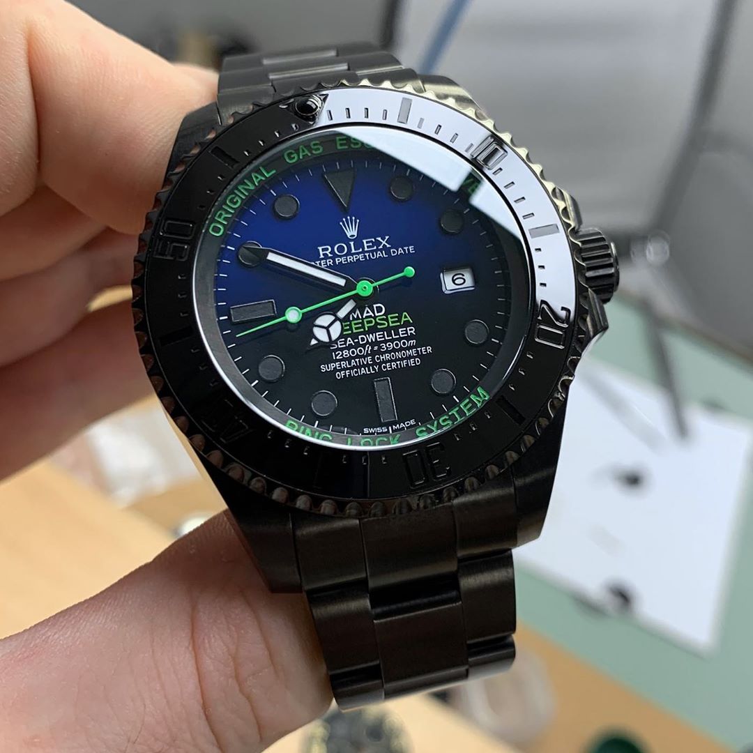 它與Submariner分屬於Rolex的兩大潛水家族,Sea-Dweller是以專業潛水性能上發展,而2017年推出的新款防水能力已達1,220米,而Deepsea則是Sea-Dweller系列潛水錶之中的皇牌,因為它的防水力更高達3,900米!這款全錶除了12點和6點方向的品牌、系列、防水註明與天文台認證等字眼維持白色外,其他位置包括日期盤也改成啞面黑色,成為低調又神秘的「王者」!