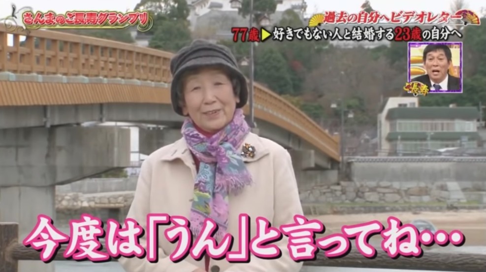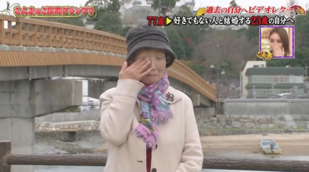 如果可以同以前嘅自己對話,你會對年輕嘅自己講啲咩呢?日本綜藝節目《ご長寿グランプリ》(爆笑!明石家秋刀魚的御長壽》成日都會請來一啲老人家,向年輕時候嘅自己喊話~而喺最近一期嘅節目入面,一位77歲嘅老婆婆就向23歲嘅自己說話,佢所講嘅感動到無數觀眾,讓網民都說:「為甚麼要讓我新年的第一天就噴淚!」
