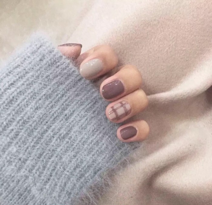 偏紫灰調嘅美甲,簡單以乳白灰作併色,以線條作跳甲變化,看起來溫柔無比!