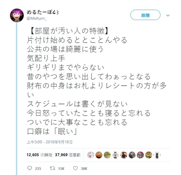 由一則關於「房間髒亂的人的特徵有哪些」日本Twitter貼文,引起了不少人的共鳴~