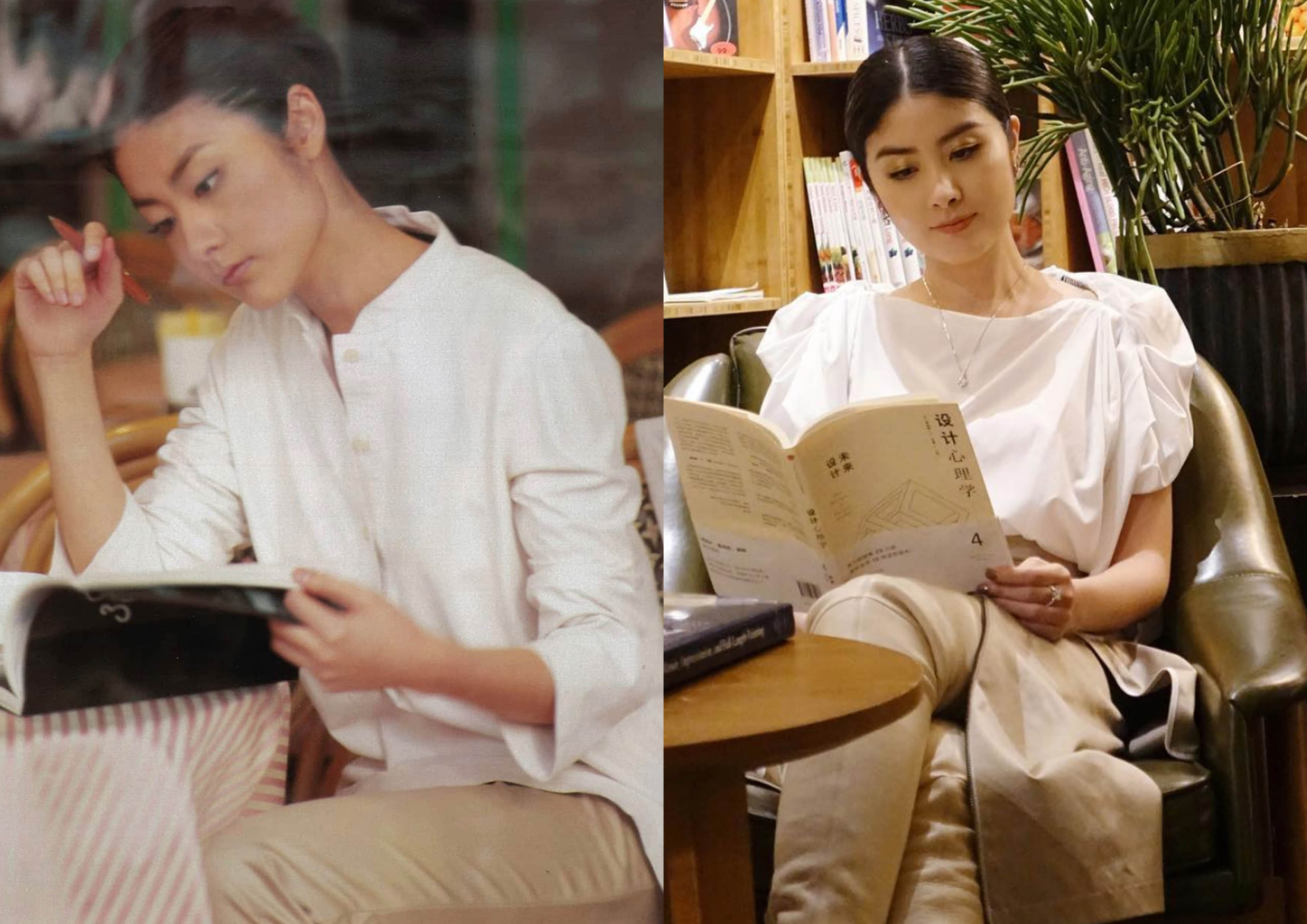陳慧琳(Kelly)近日出席珠寶品牌活動,喺花店同咖啡店內拍攝一系列相片。佢將相片上傳於Instagram,相入面嘅佢身穿白色Ruffles恤衫,下身配搭卡其色嘅Pencil skirt同過膝長靴,同佢之前發佈嘅舊相,一張1997年為日本雜誌所拍嘅相片,相似度十足。同樣都係穿上白拼卡其色嘅服裝,而樣貌亦幾乎一樣,完全冇變過,氣質依舊,更多出一份女人味~
